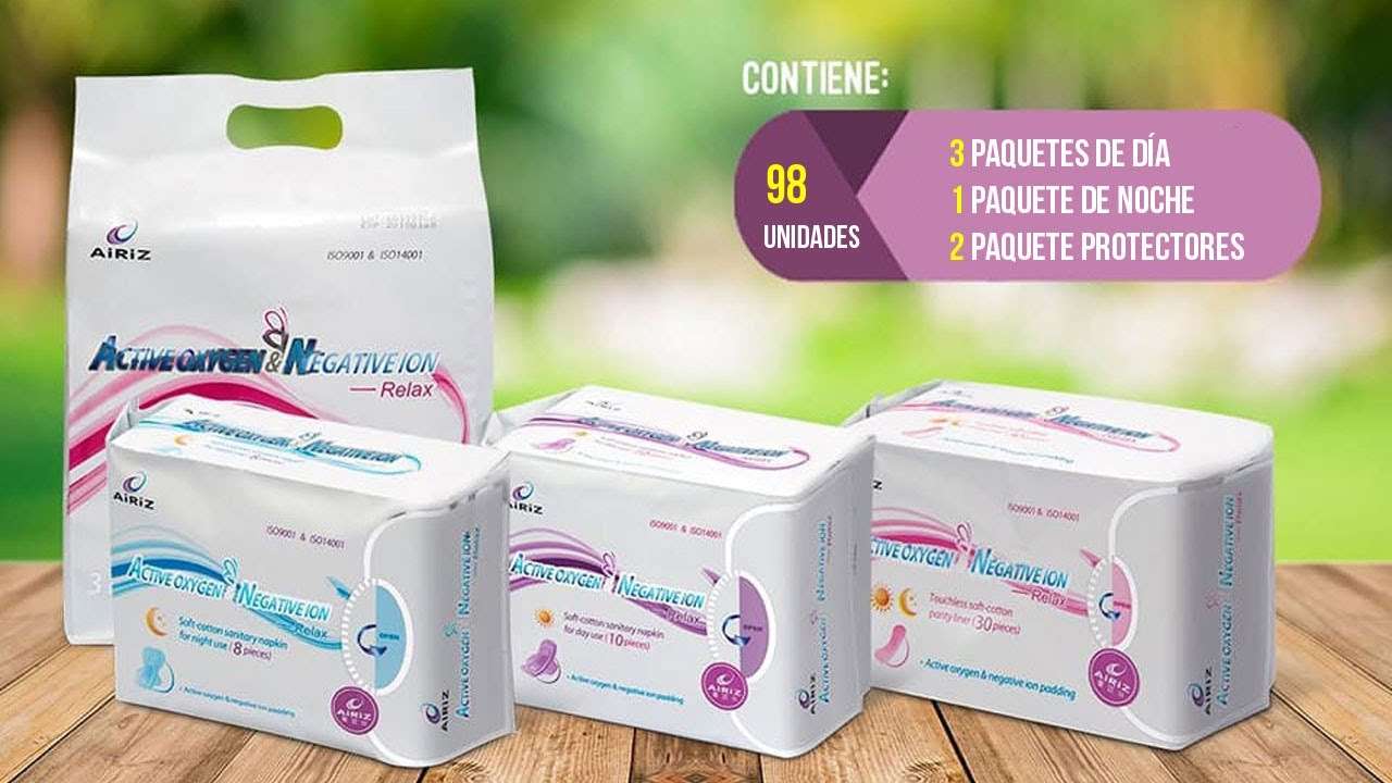 Toallas higiénicas de algodón suave con tecnología de oxígeno activo e ión negativo que te brindan un mejor cuidado.